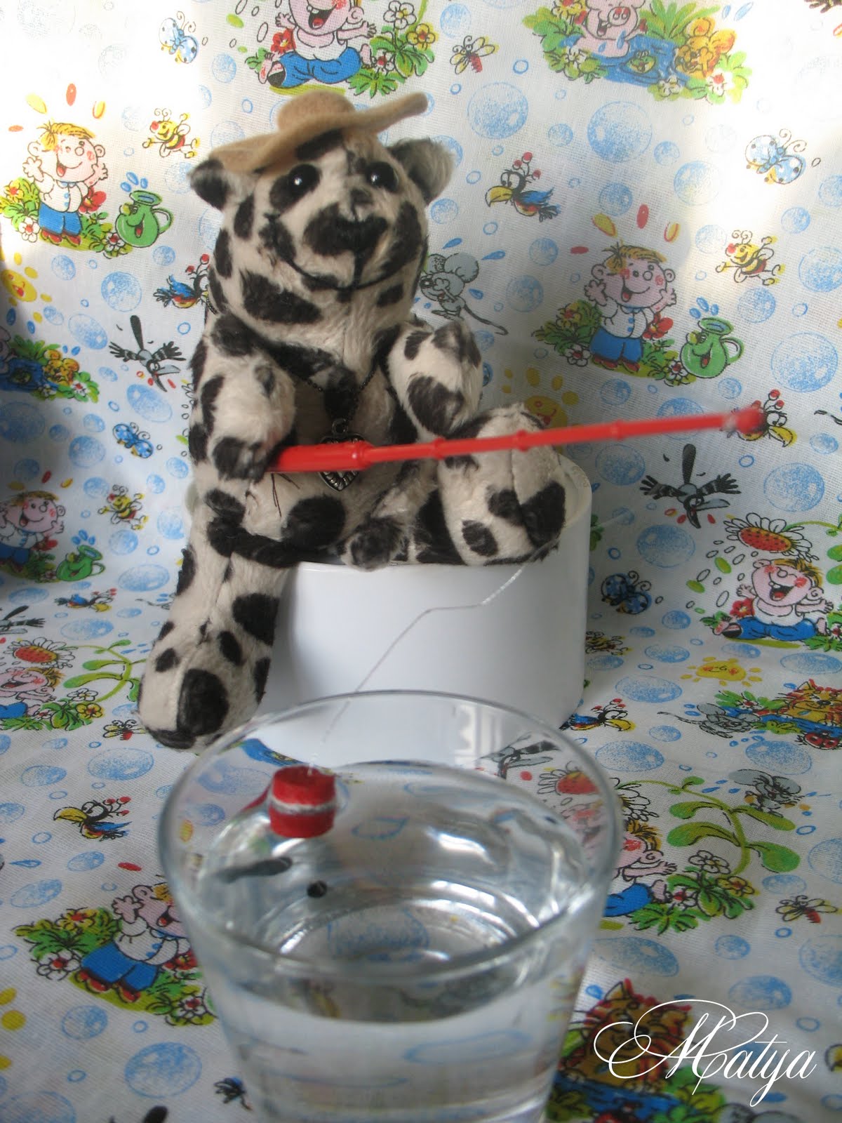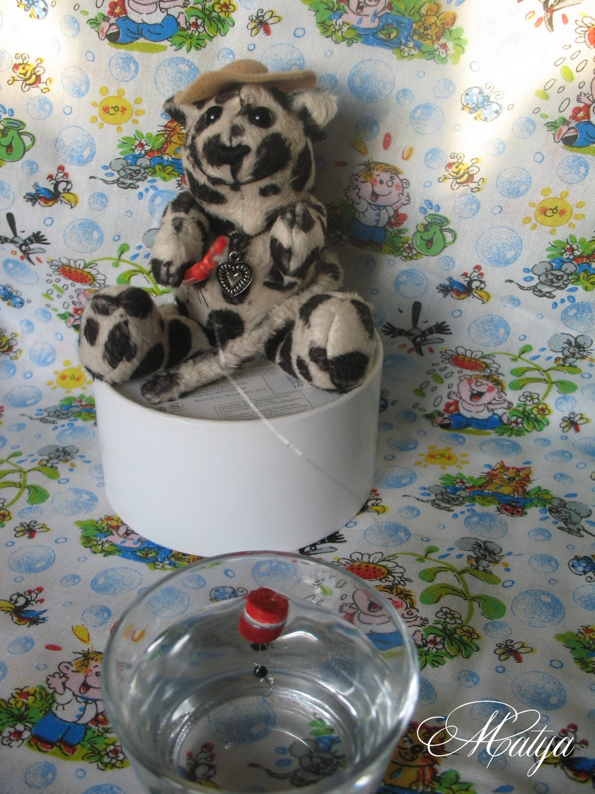 Попыталась сфотографировать их с кошкой, но ничего не получилось. Кошка его боиться...